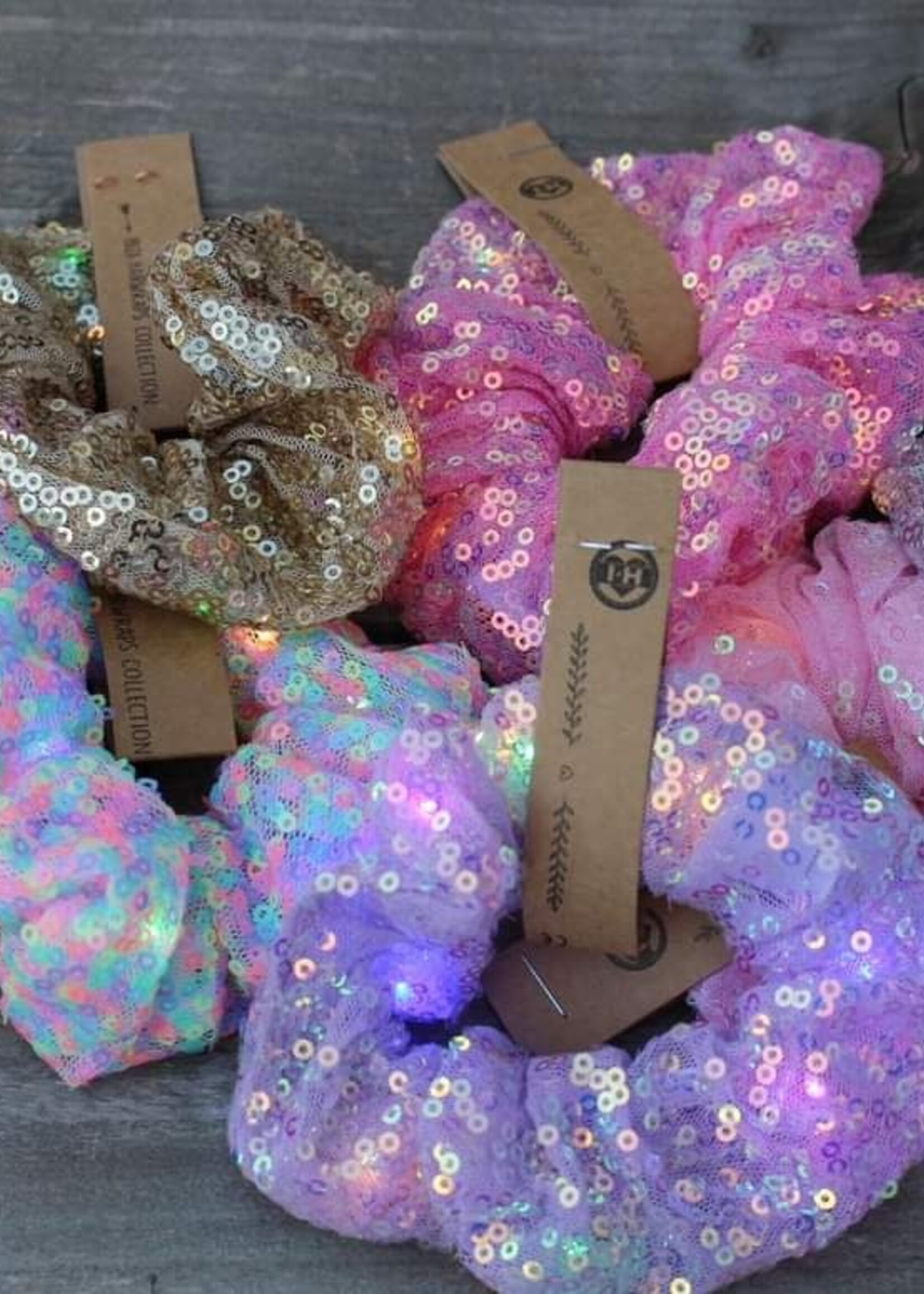 Deze scrunchies kunnen leuk in het haar gedragen worden maar ook heel leuk om de pols! zit een knopje in dus je kunt ze zelf aan of uit zetten